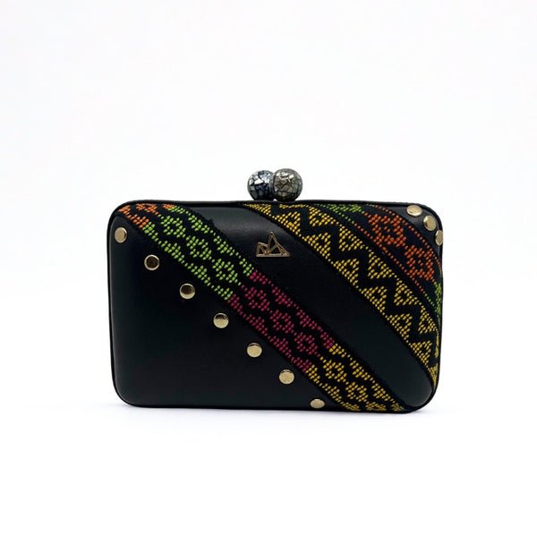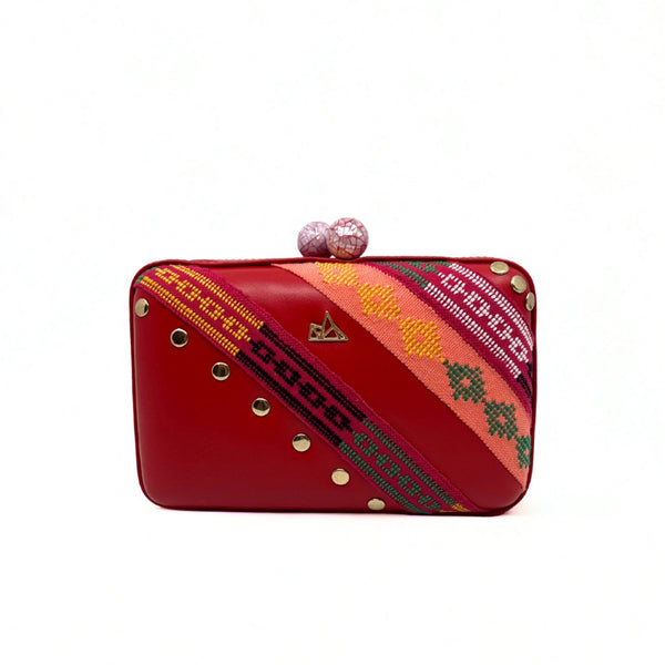 Rectangle leather clutch featuring handwoven Langkit fabric strips from Maranao people of Lanao del Sur, Philippines