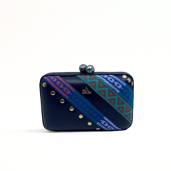 Rectangle leather clutch featuring handwoven Langkit fabric strips from Maranao people of Lanao del Sur, Philippines