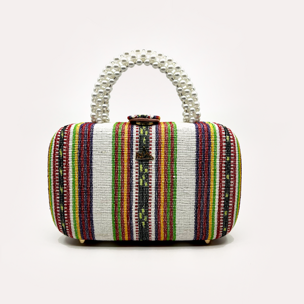 VESTI The Enclave Collection brings a sense of community, optimism, and home as it features the handwoven Balud weave from the Marawi inspired by their home in Lake Lanao. Handbeaded and strikingly made to complement the linear and colorful motifs.